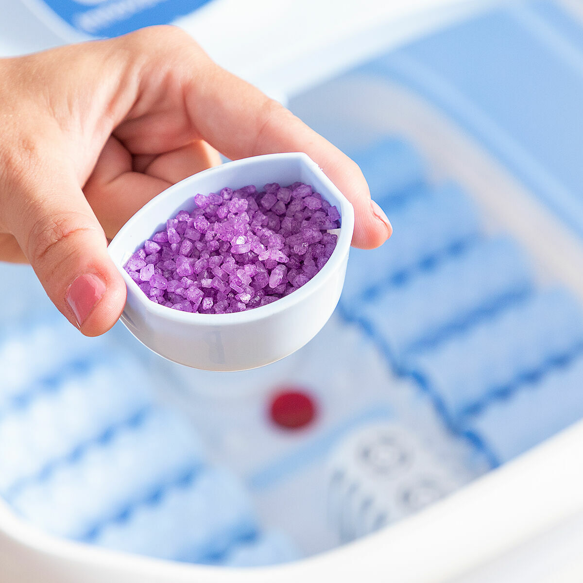 This foldable foot spa with hydromassage is the ideal solution for relaxing and caring for your feet. It features bubbles, heat, a compartment for bath salts and massage rollers with pressure points. It has a capacity of 10 L and 500 W of power.