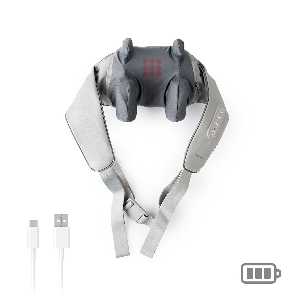 This rechargeable 6D neck and back massager is ideal for enjoying the benefits of a professional massage. Its 6 nodes simulate a massage using the fingers (kneading effect). Elastic fastening straps, 3 modes, 3 speeds, heat function.
