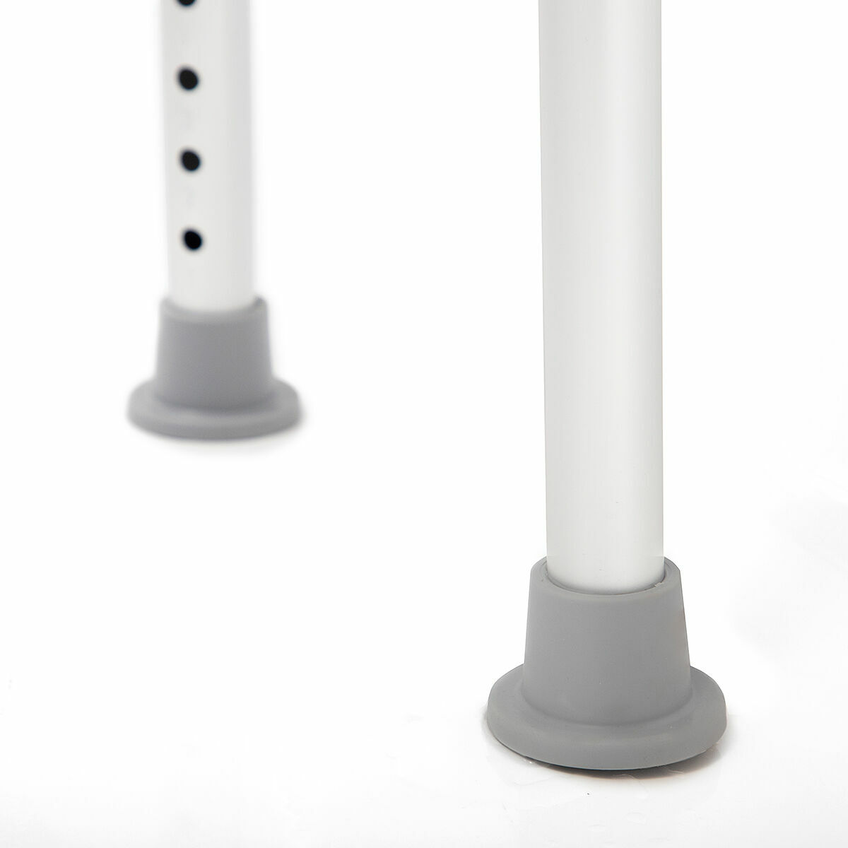 - Non-slip, safe and stable: this adjustable shower stool provides maximum hold, stability and safety. It has non-slip caps that generate a vacuum to guarantee a firm grip. Its materials are resistant, non-corrosive and high quality (aluminium, ABS and HDPE). It holds up to 130 Kg.